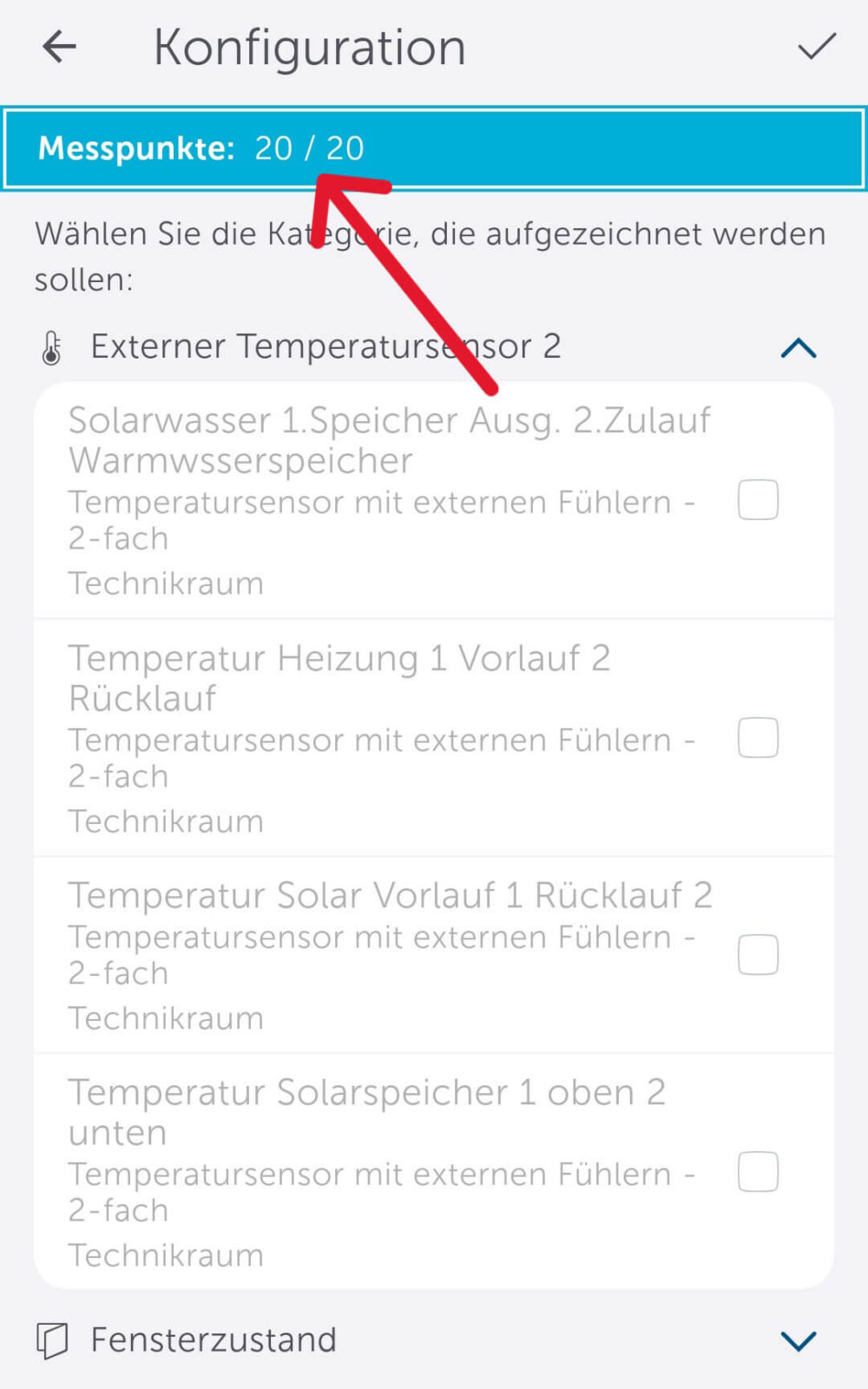 In Ihrem Fall sind bereits 20 Messpunkte ausgewählt worden (siehe auch Ihr Screenshot rechts). Mehr als 20 Messpunkte lassen sich in einer Cloud-Installation (Verwendung des Access Points) nicht auswählen.
